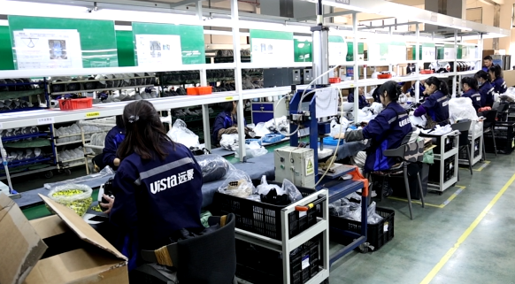 浙江远景体育用品股份有限公司新厂区,10多条组装线正在高速运转赶制订单。这家位于台州温岭的企业,从2007年开始生产滑雪镜系列产品,主要销往美国、加拿大等欧美市场,如今已经成为浙江的明星冰雪企业。