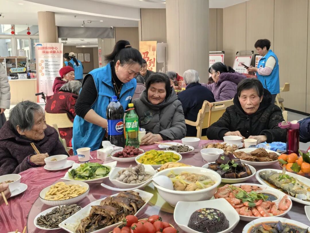 红烧肉、清蒸鲈鱼、八宝饭整齐摆满圆桌,氤氲的热气裹着年味儿,驱散了冬日的微凉,滨康乐龄中心的餐厅里暖意融融。80岁的韩奶奶穿着喜庆的红衣,坐在席间笑得合不拢嘴:“开心!办得真好!”