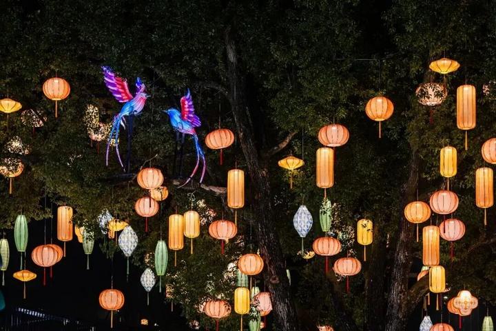 以“花鸟迎春,灵泽幻游”为主题的2026杭州西溪灯会,从小年夜2月11日便已正式开灯,将一直持续至元宵节当天。