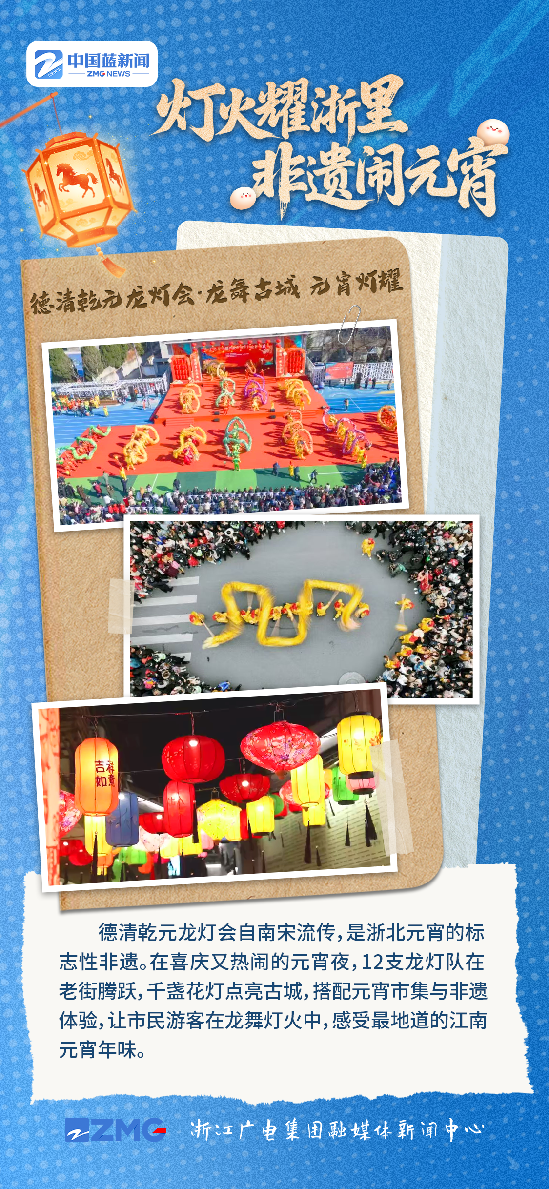 元宵佳节,浙江大地花灯如昼、非遗焕彩。锣鼓声中百米板凳龙长舞,600人队伍高举百家烛照亮古巷……各类民俗活动传递着团圆祈福的温暖,尽显烟火味十足的江南年味。