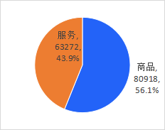 在举报投诉客体类型上,商品类共计80918件,占比56.1%,服务类63272件,占比43.9%。