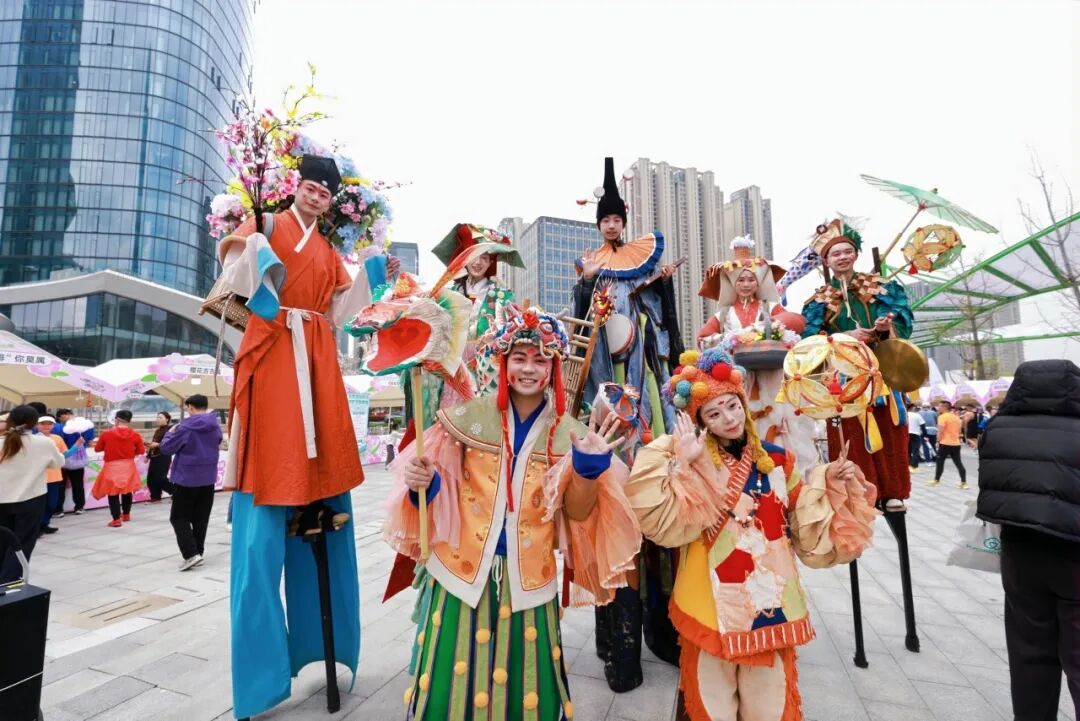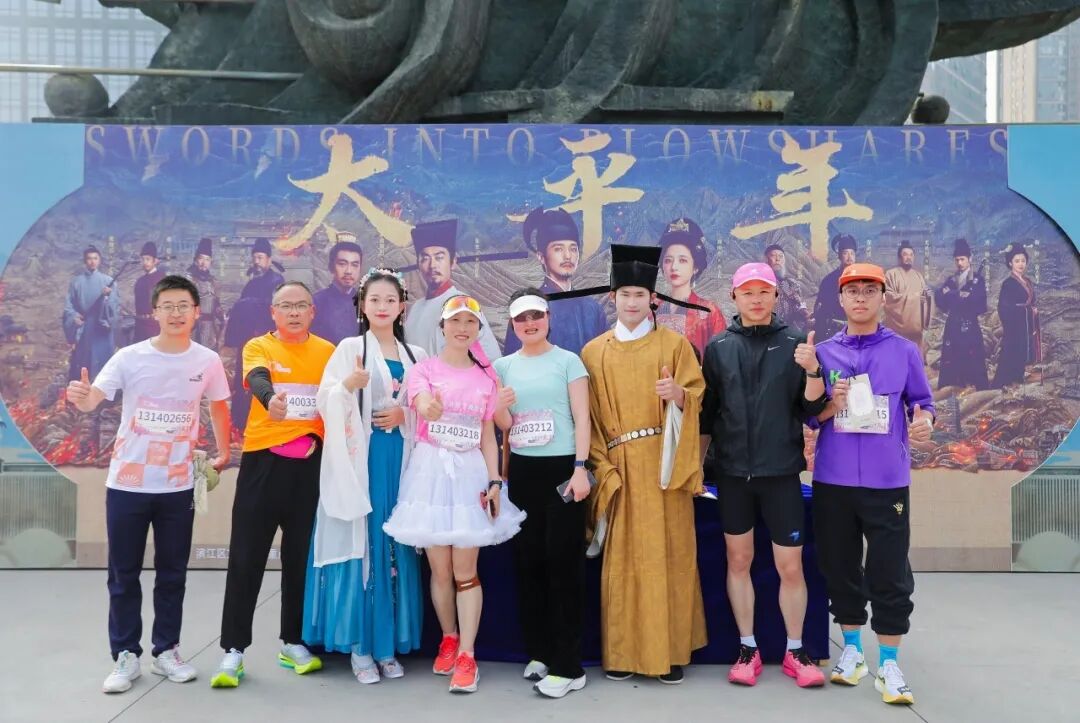 13.14公里的赛道,亦是一条文商旅体融合的“珍珠链”。在“青樱乐站”,滨江企业青年乐队与快闪舞团轮番登场,点燃青春热情;樱花市集里,书香漂流与“长河头”耕读文化交相辉映,引人沉浸;《太平年》影视主题展位前,跑者驻足聆听千年钱王传奇,触摸历史文脉的温度。