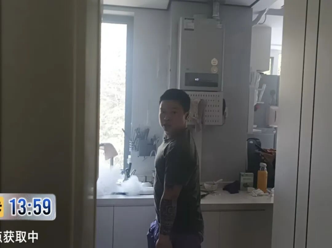 13时48分,社区与物业赶到事发楼幢,逐层排查后确认火源来自某室厨房。此时明火已清晰可见,浓烟不断从窗户涌出。