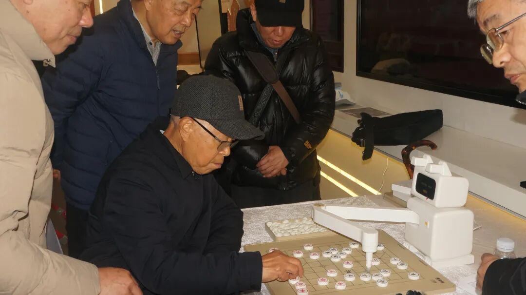 一旁,一台AI下棋机器人也吸引了滨滨的目光。据了解,这台机器人集围棋、象棋、五子棋、国际象棋四种棋类于一体,专为满足老年群体的认知锻炼与陪伴需求而设计。它不仅能自动摆棋收棋,还能帮助用户连线远方的老朋友隔空对弈。更有趣的是,它采用游戏化阶梯闯关设计,内置了6000多道围棋吃子题与丰富的残局题库,让长者在娱乐中锻炼思维。
