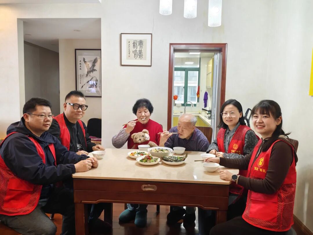 临近中午,滨江区浦沿街道江南社区江涛阁小区里,饭菜飘香。清蒸鱼、炖土鸡、小炒黄牛肉、清炒时蔬……一道道家常美味陆续上桌,热气氤氲间,商奶奶、王爷爷与志愿者们围坐一堂,吃饭、唠嗑,笑声不断。