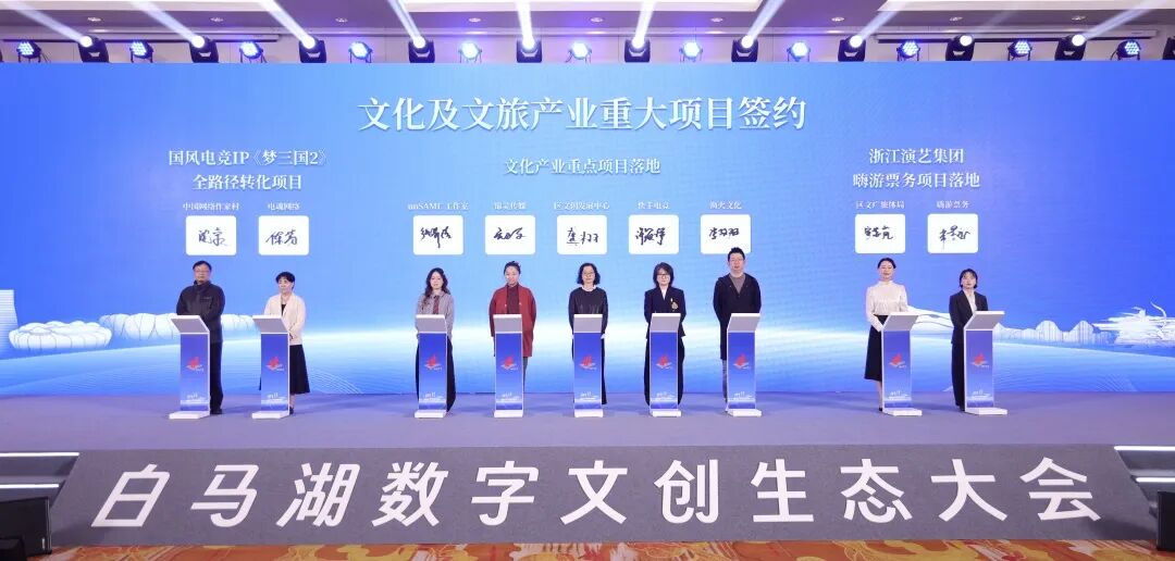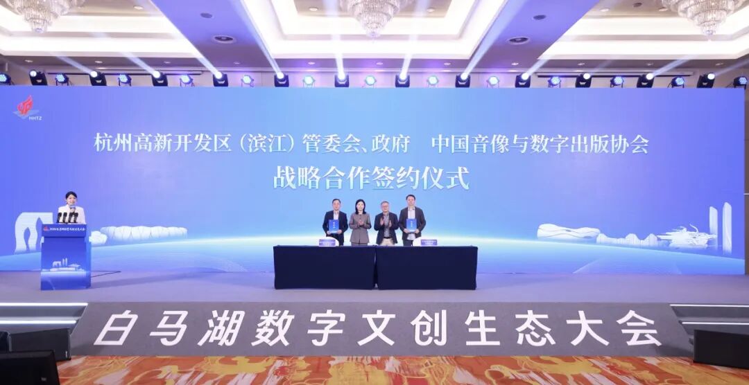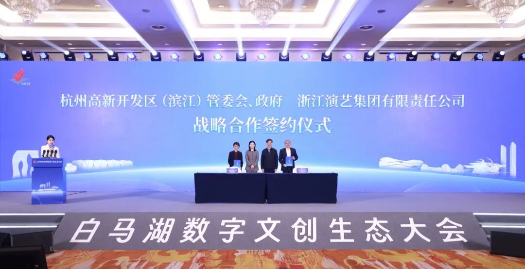 会上,杭州高新开发区(滨江)管委会、政府分别与中国音数协、浙江演艺集团有限责任公司举行战略合作签约仪式。中国音数协是目前唯一的全国性音像与数字出版行业组织,未来双方将共同举办具有全国影响力的行业交流与产业活动,组织游戏行业培训和咨询,共同建设创新游戏孵化体系,推动游戏电竞赛事落地等合作事项。浙江演艺集团有限责任公司是浙江省文化广电和旅游厅下属唯一一家大型国有文化企业,双方将在推动“浙里票务”落地、深化文商旅体融合、联合打造经典剧目、推进文化惠民工程、共建文旅融合项目等方面开展合作,共同探索“文化+科技”“演艺+数字”融合发展新路径,以高质量文化供给赋能高新区(滨江)城市功能提升与消费升级。