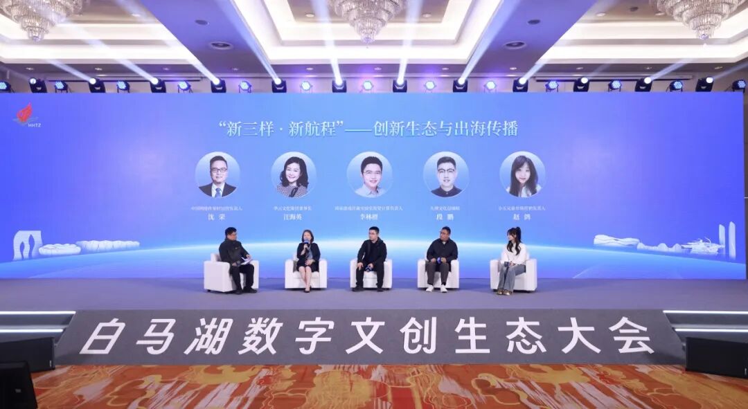 大会邀请中国网络作家村运营负责人沈荣(主持人)、华云文化集团董事长汪海英等行业嘉宾围绕聚集文化“新三样”创新生态建设与出海传播路径主题,以圆桌对话的形式开展了分享与对话。
